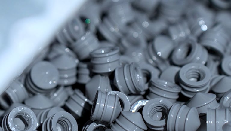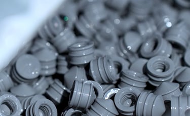 Rubber plungers and caps for syringes, infusion sets, blood collection tubes...